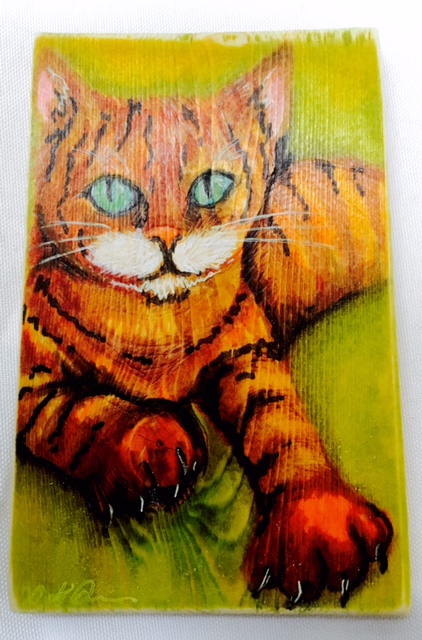Not the best pic, but a record of a new colour option (ginger), he certainly proved I need to add more like him to the range. And as it quieten off after lunch, I managed to complete a new ink on wood painting – my first Bengal! Quite pleased with how he turned out 😄